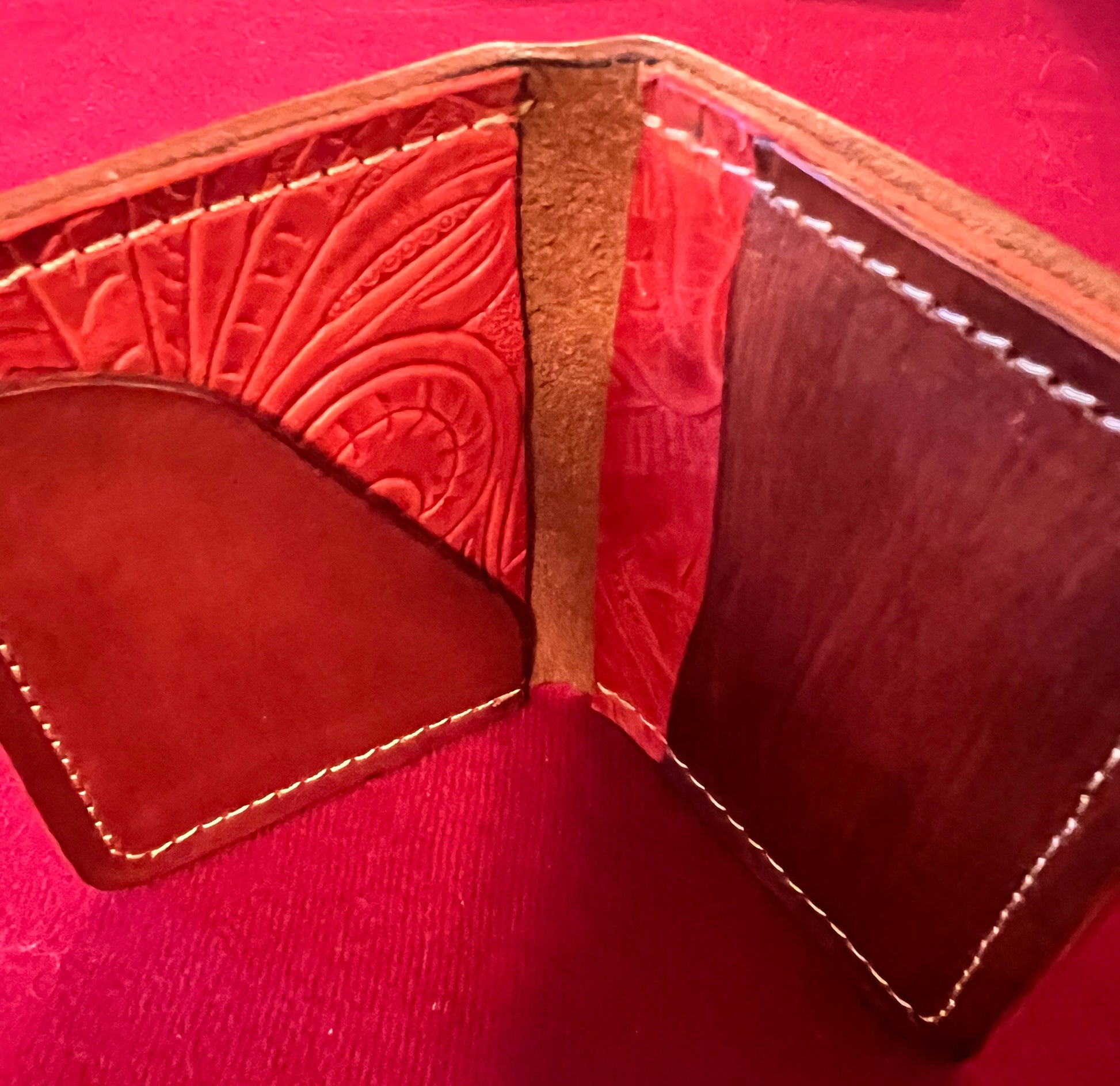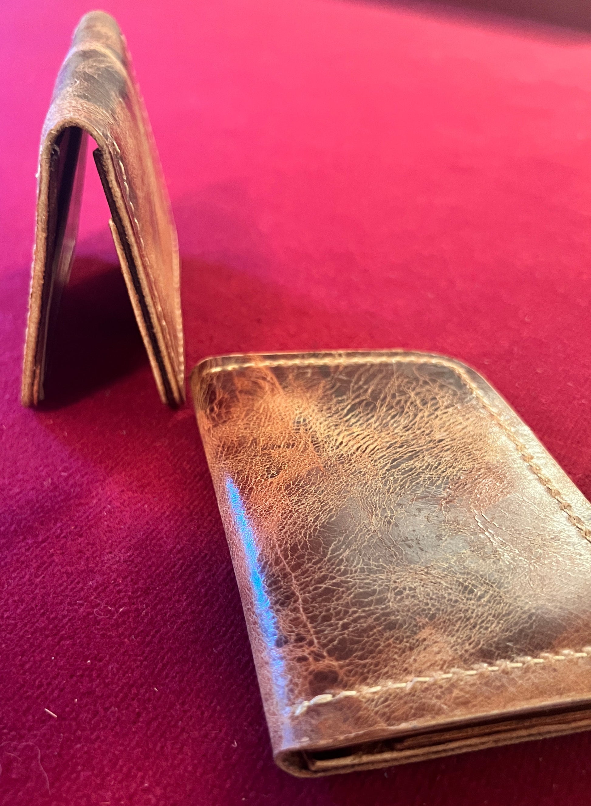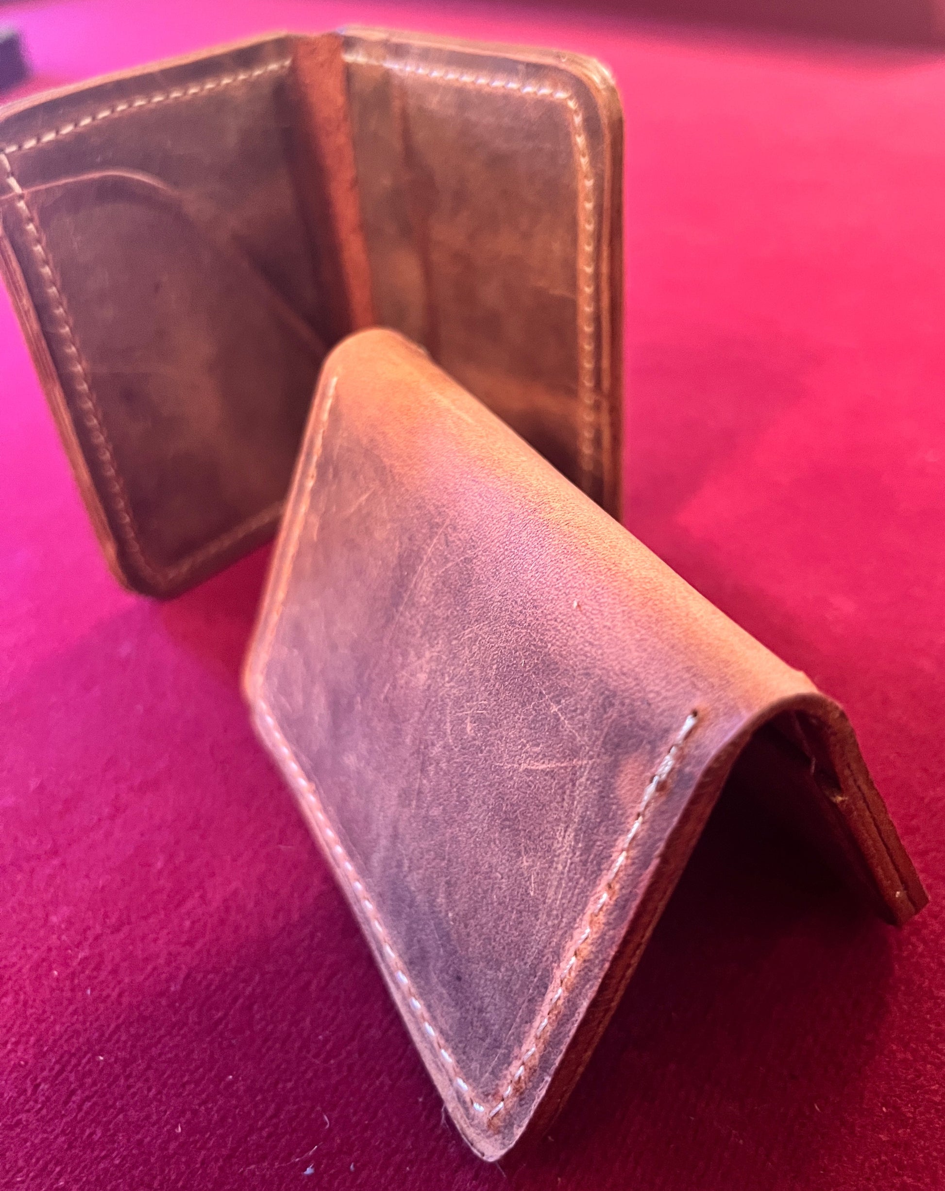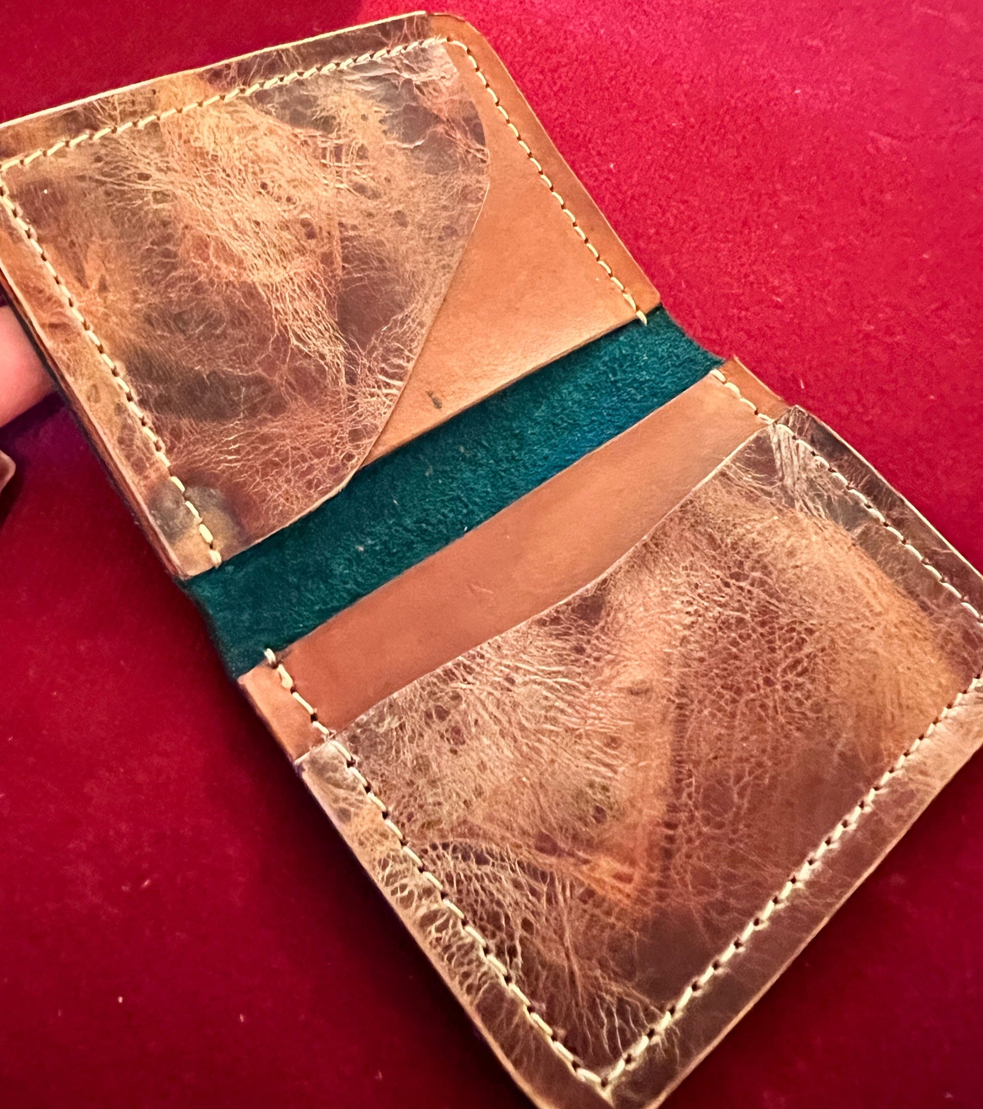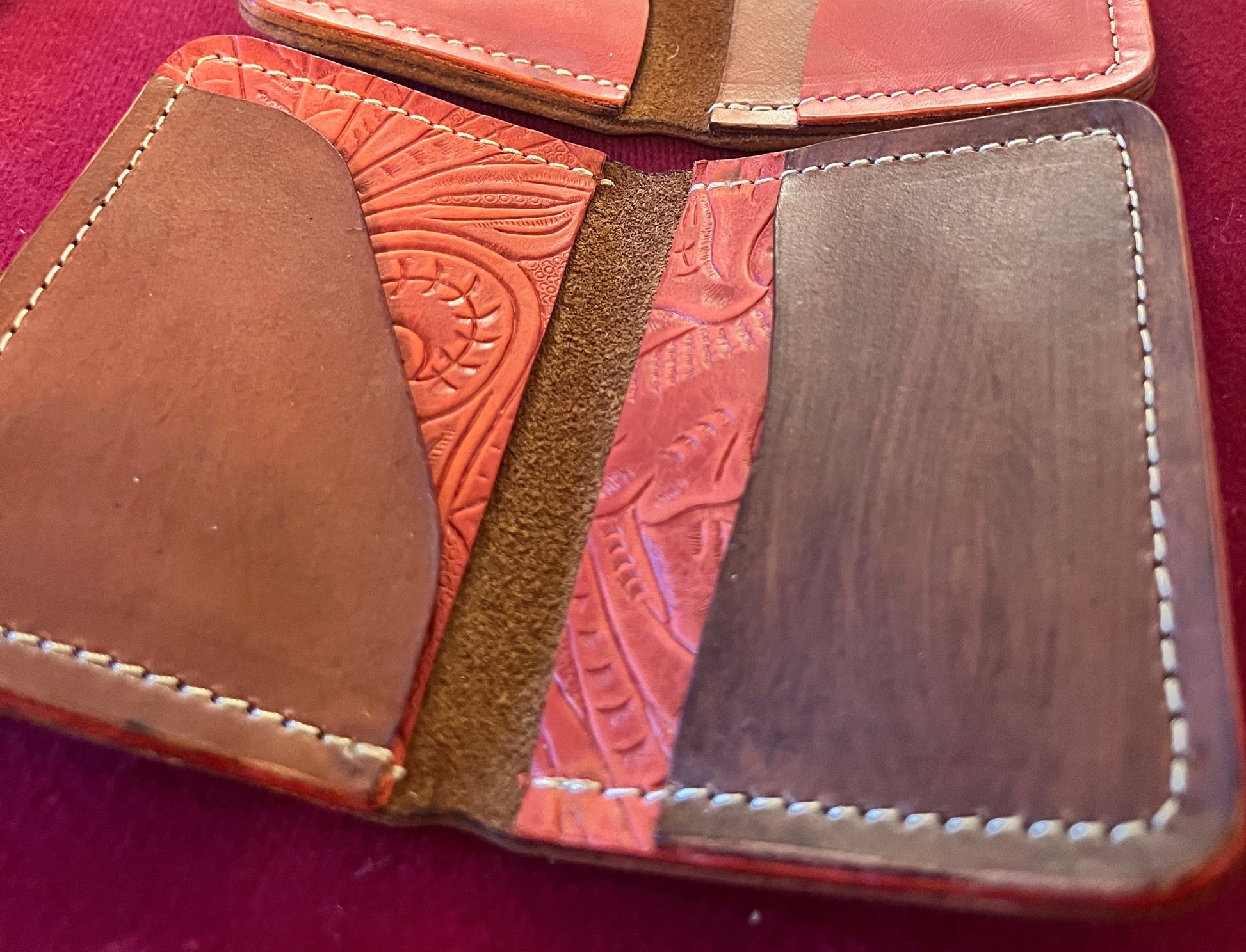 Simple bifold wallet with 4 pockets. Several different leathers used for this simple wallet from chrome tanned to hand-painted Italian leather. Each one different and put together thoughtfully for elegance and style. Edges are hand burnished for a clean look.
